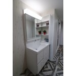 三面鏡で収納もたくさんある洗面台に取替ました。ボウルも大きくなり、以前より使いやすくなりました。