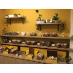 アクセントカラーがポイントの明るい店内