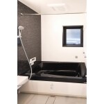 黒のアクセントパネルが素敵な高級感たっぷりの浴室