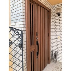 玄関の防犯性を高め、見た目も経年で痛んできているので新たに木目調の玄関に交換したい。