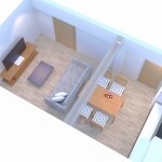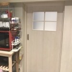 元の勝手口をふさいで冷蔵庫スペースにし、隣の部屋を脱衣室にします。