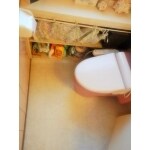 汚れが目立って暗い雰囲気だったトイレの床にクッションフロアを張りました。トイレ全体が明るく清潔な空間に仕上がりました。