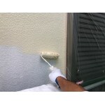現地調査時、外壁にクラックが多数見受けられましたので、シーリングでクラックを埋める補修をすることをお勧めいたしました。当然ですが、クラックからは雨水が侵入することもあり、壁の下地まで雨水が浸透してしまいますと、腐食が進み、傷んでくるので、早めの補修が必要でした。クラックを補修し、通常通り塗装工程に進みます。
