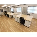 配線穴があるデスクをご提案し、パソコンの配線はデスク下にきれいに設置できるようになりました。 床上にあった配線は、床下に隠蔽し、フロアータイルを新設し、スッキリしました。