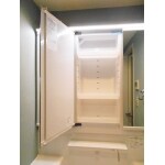 既存の一面鏡洗面化粧台は、収納部分が少なかったので、TOTO オクターブ 三面鏡にお取替えしました。 鏡裏はすべて収納スペースになっているので、日常的に使用するものを収納するのに便利です。 手洗い・洗顔時にメガネや指輪などの一時置きに便利なスマート棚は、よく見えて手がすぐ届くので、整髪などもスムーズに行えます。