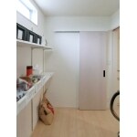 1階の土間スペースを収納庫に有効活用