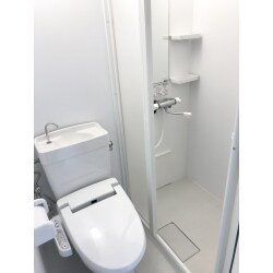 1ルームでしたので他にトイレを作るスペースがありませんでした。3点ユニットと同じスペースにトイレとシャワーを折戸で間仕切る事が出来るタイプのユニットに交換