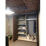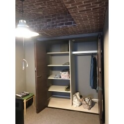 押入の襖や腰棚等を撤去してクローゼット用の折戸に交換 中の棚も使いやすくパイプとダボレールを使った棚に交換
