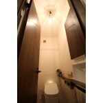 木目の柔らかな雰囲気のトイレに、カフェのようなオシャレな照明をチョイスしました。一つアクセントを加えるだけで、雰囲気がガラリと変わります!