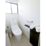 2階 アクセントクロスでおしゃれなトイレ空間に