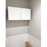 洗濯機置き場の上に棚を追加、建具の交換、洗濯パンの交換をしたい。