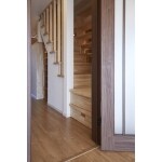 廊下の通路幅を考慮して、一番下の階段は使わない時は収納できるように工夫しました。使用時には引出して使えます。