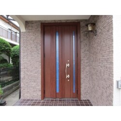 既存は木製の玄関ドアでした。 お取替え後も木目調のドアを希望されていました。