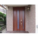 LIXILの「リシェント」(色:ポートマホガニー)にお取替えしました。ドア廻りの壁にタイルを貼り、玄関廻りの印象をガラリと変えることが出来ました。