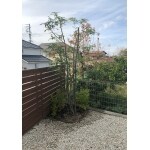 駐車場すぐむこう側に記念樹とウッドデッキがありました。