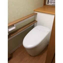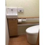T社のネオレスト手洗器付 Sサイズ カウンタータイプを設置致しました。手洗器が設置され、楽な姿勢で手が洗えるようになりました。また、サイドのカウンターには収納スペースとしても活用できます。 設備交換に合わせてクロス・CFも張り替え、トータルリフォーム致しました。