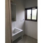 レイアウトを変更することで、造作による収納スペースが設置可能になり、洗面室の空間を広々使用できるように。