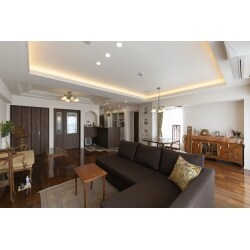 働く女性の一人暮らしで、心を豊かにするためのリフォームを心がけました。好きな家具を活かせる素敵な暮らしを提案しました。 マンション特有のだだっ広い四角い空間になりがちなのを、天井を折り上げにして空間に表情をもたせました。