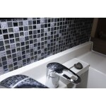 壁面のガラスタイル張りで、きらめくサニタリー空間に!