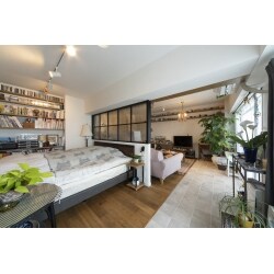 LDKと寝室を一体化し、間仕切りをガラスにしたことで、広々とした空間になりました。インナーテラスを設け、外との繋がりも作りました。