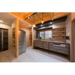 和室とトイレをキッチン空間に取り込み、思い切ったゾーニングをご提案。DIYがご趣味の施主様のお好みに合わせたテイストに仕上げました。
