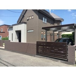 住宅の外壁や既存のお庭の色味やデザインと調和を取りつつ使いやすくなるよう、汚れに強く、綺麗な状態がより長持ちするLIXILの外装タイルをご提案させていただきました。 また、住宅のデザインや既存のデッキの色に合わせて、跳ね上げ門扉とカーポートには木目カラーを取り入れました。