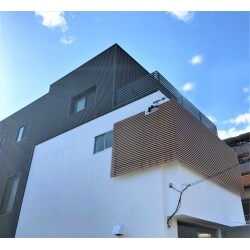 ルーバー面積を減らすことで外観の色・形状のコントラストがアップ。特に外壁の白が際立ち美しくなりました。