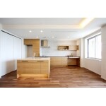 戸境壁に設置されたI型キッチンで、リビングに背を向ける形でお料理をされていました。そこで、リビングダイニングと一体的に使える、明るく開放的なアイランドキッチンをご提案させて頂きました。 また、リビングと隣接する位置に、二人兼用のお子様部屋を確保しました。将来的に2部屋に分割することを見越し、簡易リフォームで対応できるよう、ドアを2つ付ける等の工夫も施しました。