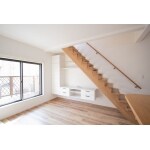 階段したのスペースを活かし、壁付けボードを設置することでリビングの有効スペースが広くなりました。