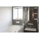 ゆったり快適なバスルーム。 アクセントパネルも黒にし、シックで落ち着きのあるバスルームに仕上がりました。
