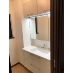 ・洗面化粧台(内装含み)をリフォーム致しました。 洗面化粧台には、T社のエクスアLSを設置致しました。 以前よりも収納スペースがアップしております。また「きれい除菌水」という歯ブラシや排水溝に除菌水を撒き、綺麗を長持ちさせ、清潔さを保てる機能も付いております。 ・脱衣所が寒いとのお声も頂いていたので、暖房換気扇を脱衣所にも設置致しました。