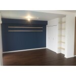 リビングの隣の和室を洋室に変更しました。アクセントクロスにはサンゲツの RE-7927を採用しました。チョークで自由に描き消しができる黒板のような壁紙です。押入横のスペースに可動棚を設置しました。収納の建具のホワイトが壁との一体感がありアクセントクロスが映える空間に仕上がりました。