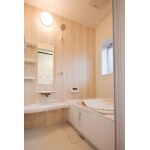 釜の分だけ浴槽も広くなり、カウンター・収納棚も備え付け、今風な明るいバスルームに!
