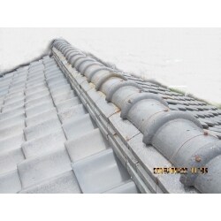完全に崩れていた棟は積み直し、ボロボロになっていた漆喰は打ち替えました。 また、平瓦が3枚割れていたので差し替えました。