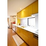 キッチンの長さは既存と同じ。奥様は既存の黄色いキッチンをお気に入りとのことで、今回も黄色をセレクトしていただきました。