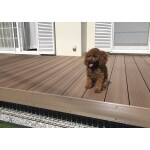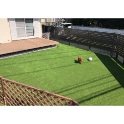 元々あった芝生や植栽は撤去し、広いお庭でワンちゃんが気持ちよく遊べるよう人工芝を敷きました。 室内との出入りについては色々な相談をさせて頂いた結果、ウッドデッキを取り付ける事になりました。 お庭が広い為、デッキをリビングの延長として使えるよう広くスペースをとりました。 またお庭が開放的になりすぎないよう、道路側に目隠しフェンスを設置しました。