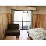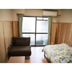 居室の壁や天井、和室床の間に至るまで羽目板を施工しました。 また、他にもトイレはこだわりのタイルを使ったことで、他の民泊とは違うこだわりの空間を演出しています。
