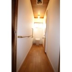 現状では廊下とトイレに若干段差もあり、タイルの床と壁なのでタイルを撤去し、小便器も撤去。 壁は土壁なので上からコンパネを貼って大壁に直し、トイレも全自動型トイレに交換して、とてもお掃除がしやすく使い勝手の良いトイレにリフォームできました。 トイレ内が長くなりましたので、手すりも取り付けました。