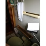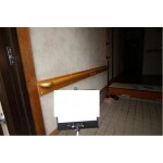 この壁には下地がないので、間柱の所にした地板を設置し、その上から手すりを設置します。 奥にある「縦手すり」はお客さまが設置した物で、最初からそこにありました。