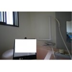 廊下の角の所に縦手すりを設置します。 設置場所は養生テープを貼って高さなどの確認をしていただきます。