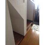 階段下に生まれたデットスペースを活用し収納をご提案。 玄関先にあるので、靴の収納やアウトドア用品をしまうことができます。 汚れに強い壁紙をご提案しました。