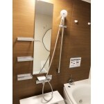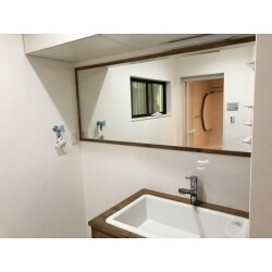 収納のできる三面鏡でスッキリとした洗面化粧台に