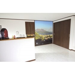 ・8.75坪という限られた空間ではあったが、この狭さが介護の必要な環境にとっては逆に功を奏し、トイレ、お風呂など短い動線で集約することが出来た。 ・これまでお父様が住まれていたマンションのリビングからいつも見えていた絶景をそのまま、壁紙にした桜島は、息子様からご両親へのサプライズプレゼントとなった。