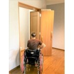 段差を解消し、トイレは、開口部を広くとれる3枚扉にすることによって自力でトイレに行けるようになった。