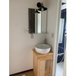 三面鏡×壁付け水栓で使い勝手良くなりました