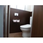 ウオシュレット付の節水型洋便器にして、壁にはキッチンパネルを貼り清掃性を良くするご提案をしました。