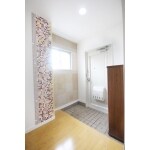 悩みの種だった結露対策には内窓や断熱材でしっかりと補強し、さらに湿度を調整する効果のあるエコカラットタイルを貼りました。エコカラットもモザイクタイルと一緒に貼ることで、より一層かわいくナチュラルな空間を演出。賃貸住宅とは思えない上質な空間に仕上がりました。