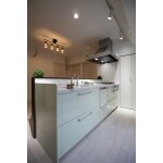 システムキッチンは、弊社おすすめのTOTOミッテ。使い勝手のよい、お手入れしやすいキッチンです。 扉は淡い色合いでスッキリと清潔感のある印象に。