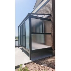 天候に左右されないように、サンルームを取り付けてほしいとの依頼あり。サンルームの下に、タイヤ等を保管出来るようにしてほしい。