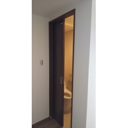 開けやすさ、ドアの開閉で空間を取らないように引戸に。他の工事を最小限におさえるためアウトセットでご提案させていただきました。